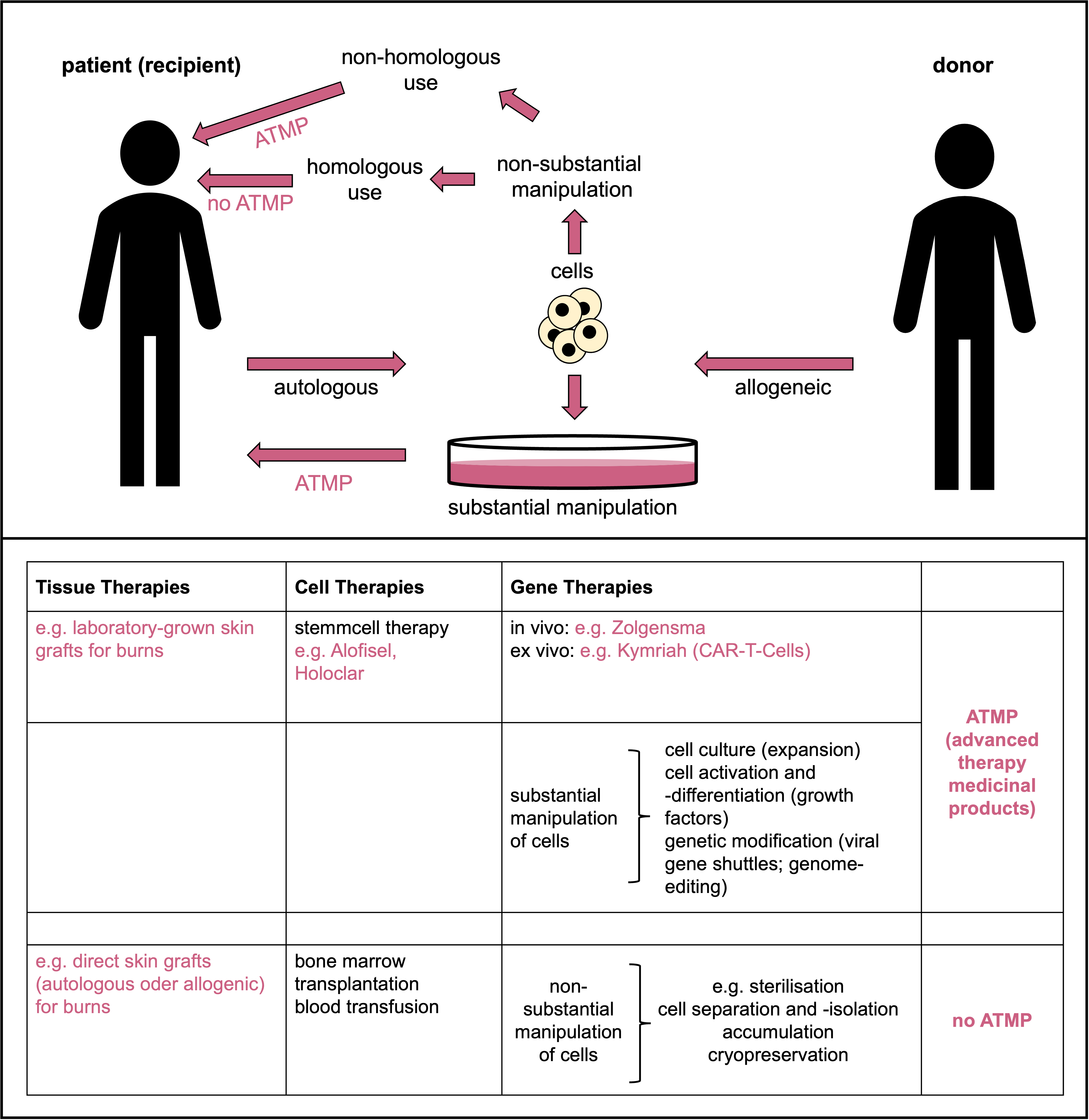 Somatic cell therapy medicinal products that have been substantially manipulated for use in the body - for example, by propagation in cell culture as in the case of Holoclar and Alofisel - are referred to as ATMPs (advanced therapy medicinal products). The German national regulatory authority for ATMPs is the Paul Ehrlich Institute (PEI), while the European regulatory body is the EMA Committee for Advanced Therapies (CAT). According to the definition given by these regulatory bodies, this category also includes all gene therapy medicines as well as biotechnologically processed tissue products (‘tissue-engineered medicines’) such as skin cells grown in cell culture for transplantation into patients who have suffered severe burns.