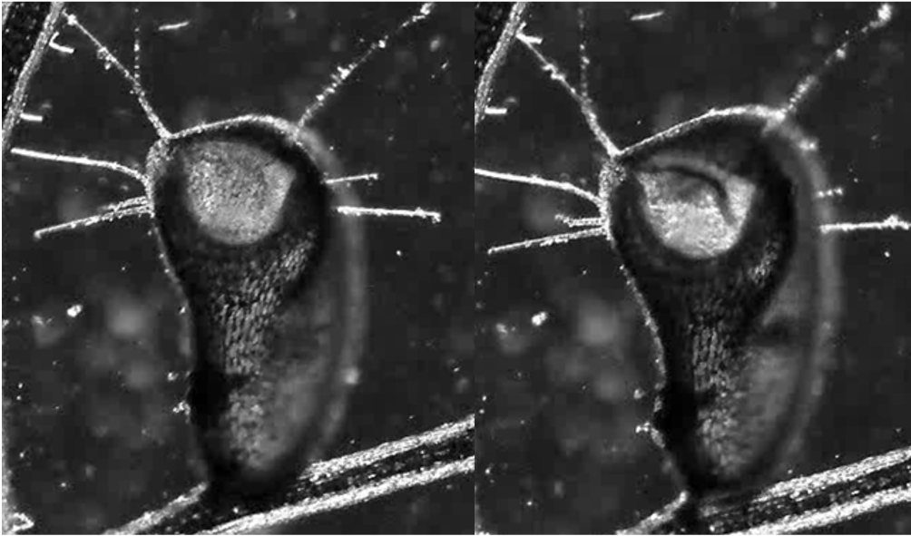 The bubbles of the aquatic plant Utricularia vulgaris served as a biological model for the team's new speaking valve. Left: Closed bubble; right: The membrane opens and sucks microorganisms inside. © Plant Biomechanics Group, Botanical Garden, University of FreiburgHowever, transferring the biological principle to a technical application was no trivial matter, as the flow direction had to be reversed. While the plant creates underpressure to suck in water when the valve opens, the artificial valve had to respond to overpressure in order to open. "In an emergency, the membrane needs to open outwards rather than inwards," explains Stahl. "This is where we departed from the biological model and made the necessary abstraction."