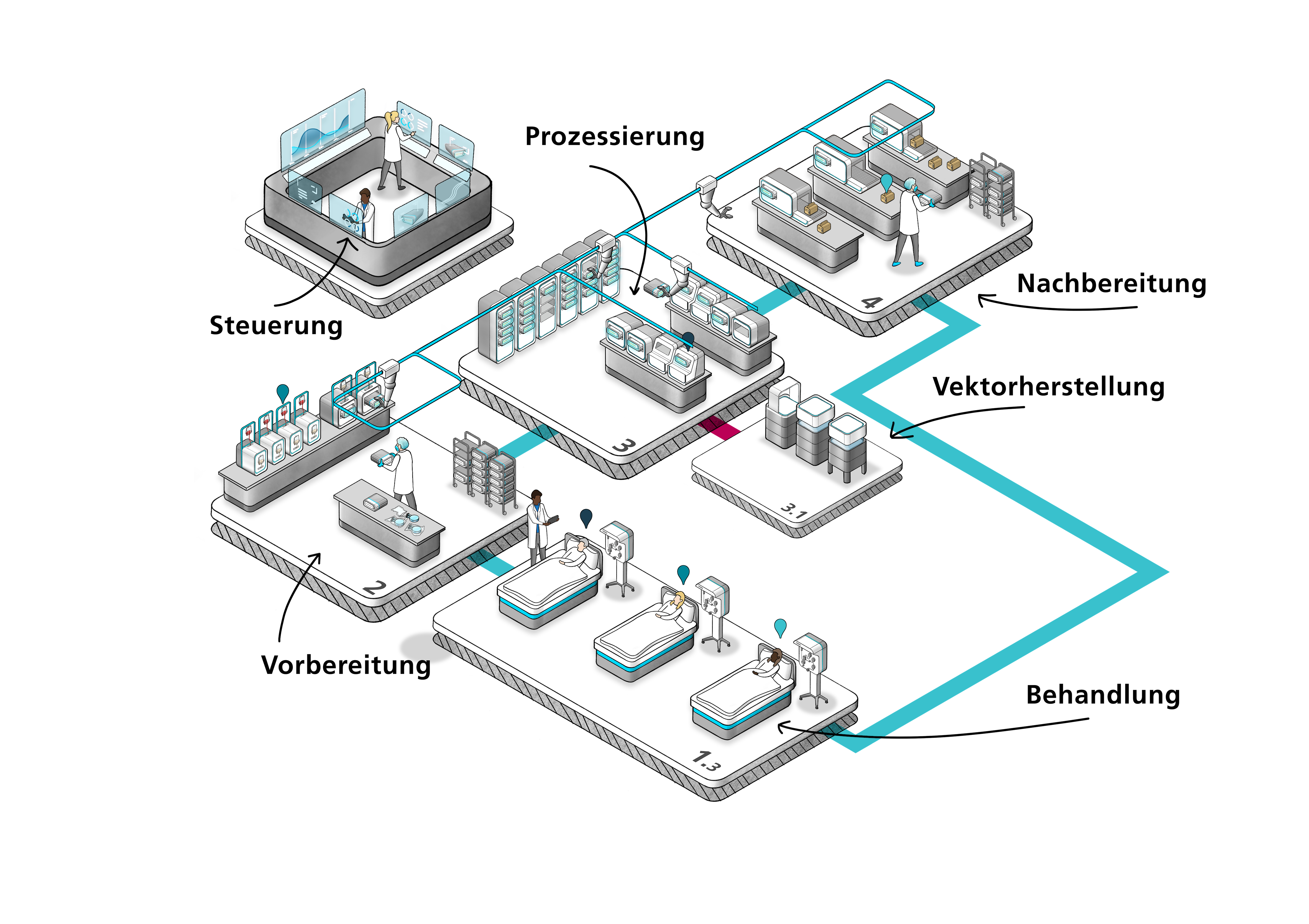 One of the greatest challenges associated with ATMPs is the quality requirements for gene and cell therapeutics, which means that development and production is restricted to a few production centres only. This added to the often very long development times, major development risks and elaborate clinical trials makes treatment very expensive – a single dose currently costs around 275,000 euros. Price is therefore the reason why therapies are not yet widely available. Due to the high quality requirements and the dependence on a product-specific manufacturing licence, there are still no standardised manufacturing processes for ATMPs that would significantly reduce production costs.