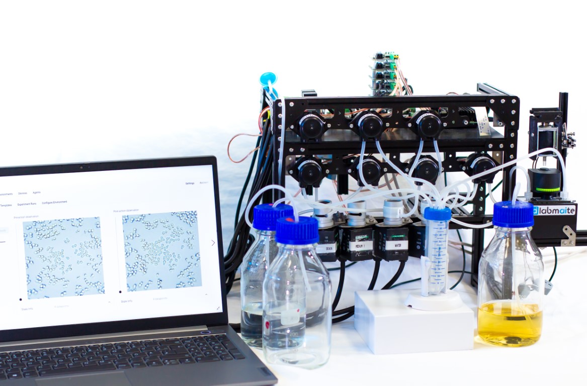 While AI continually adjusts the experimental conditions to arrive at the desired outcome, experimental data is being collected and analysed simultaneously. This eliminates the time-consuming aspect of subsequent data analysis. The recently founded company provides both the hardware and the software needed to conduct experiments as well as collect and analyse the data.