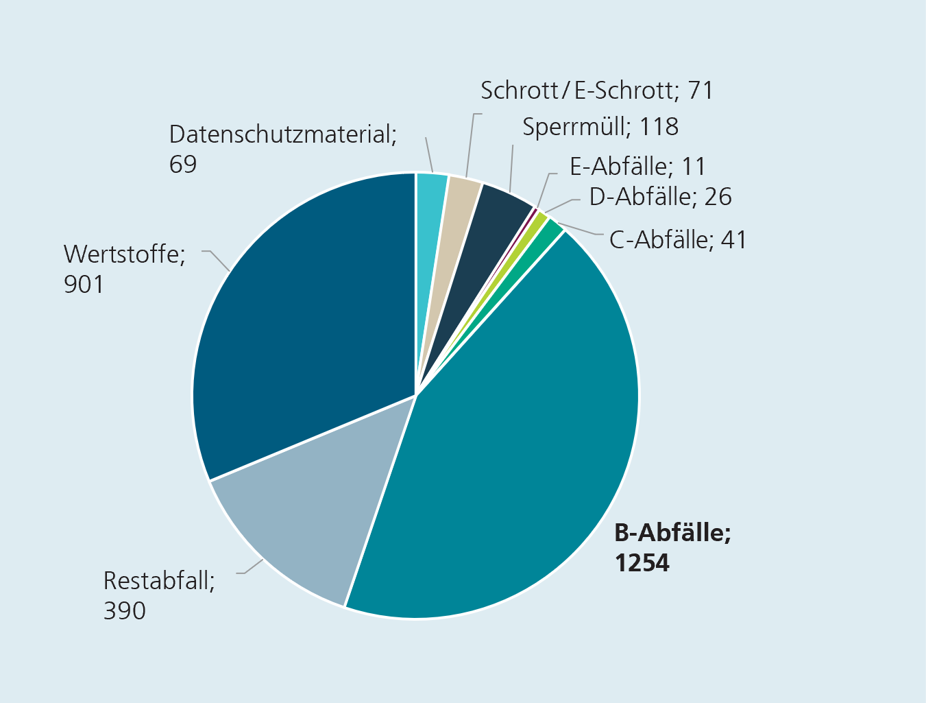 Composition of waste in tonnes accumulated at the Dresden University Hospital in 2021. (Source: internal environmental report) © Fraunhofer IWUThe Fraunhofer Institute for Machine Tools and Forming Technology (IWU) has also set itself the task of providing comprehensive information to stakeholders from industry, science and government in order to promote sustainability in the field of medical technology. In collaboration with the Carl Gustav Carus University Hospital at the Technical University of Dresden, it looked specifically at the field of waste and published the white paper "ReMed: Material recycling to achieve sustainable medical technology - challenges and solutions for the processing of clinical waste" in 2023.3)